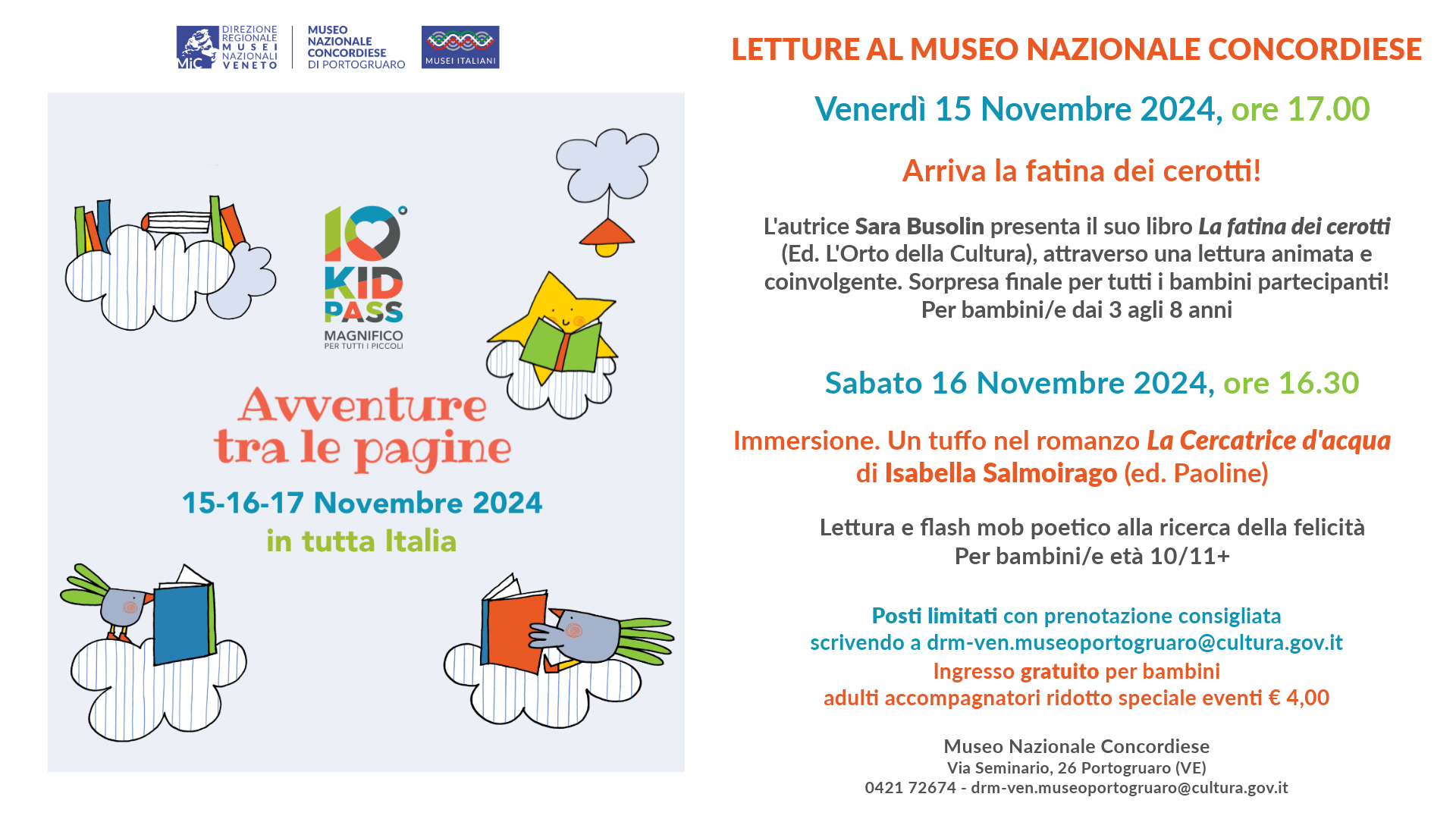 Il Museo Nazionale Concordiese di Portogruaro partecipa alla sesta edizione di Avventure tra le pagine – Leggiamo al museo, il programma nazionale di edutainment promosso da Kid Pass, per avvicinare le famiglie al mondo della cultura, portandole a scoprire i musei italiani ed educandole all’importanza di leggere insieme ai bambini.