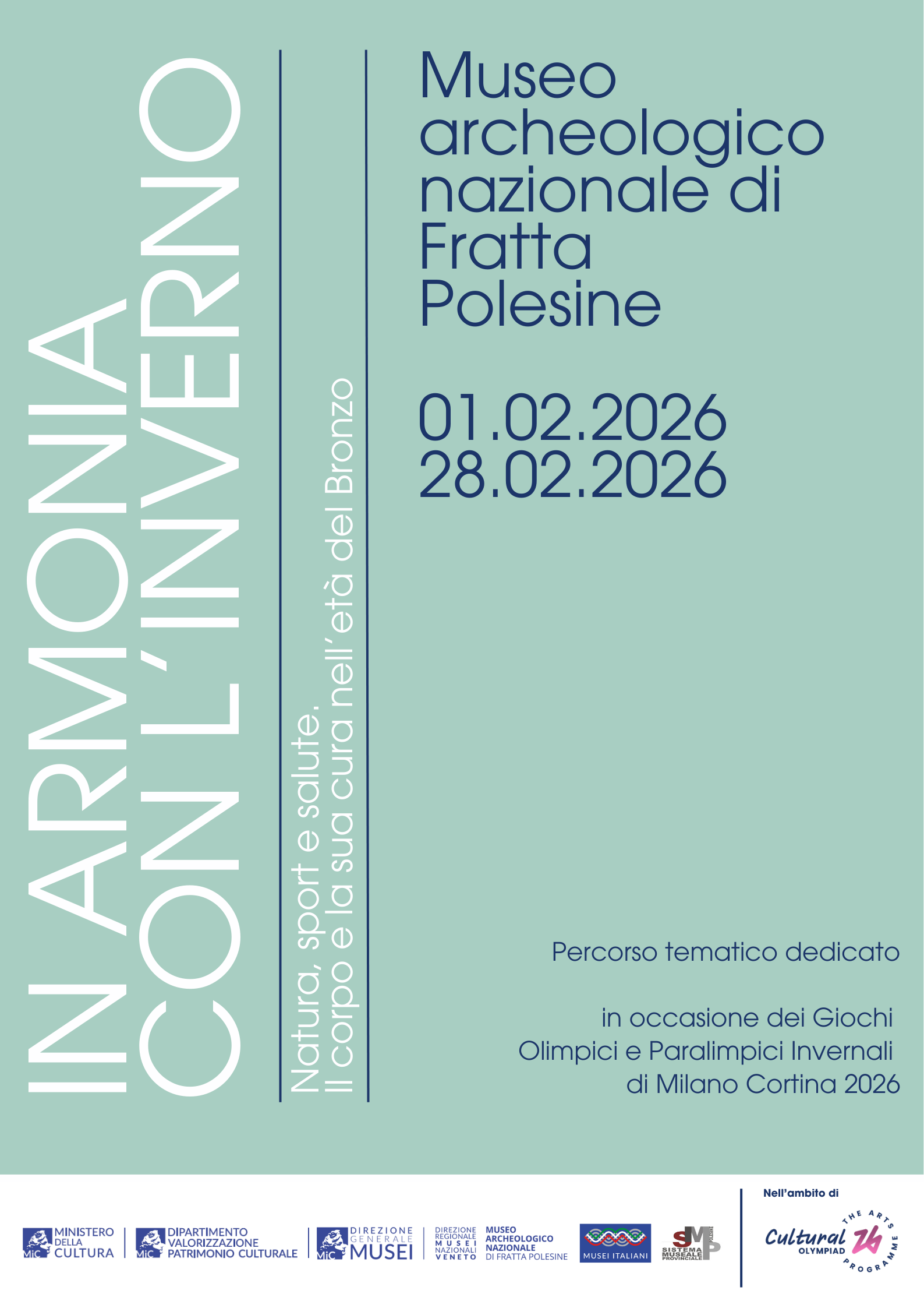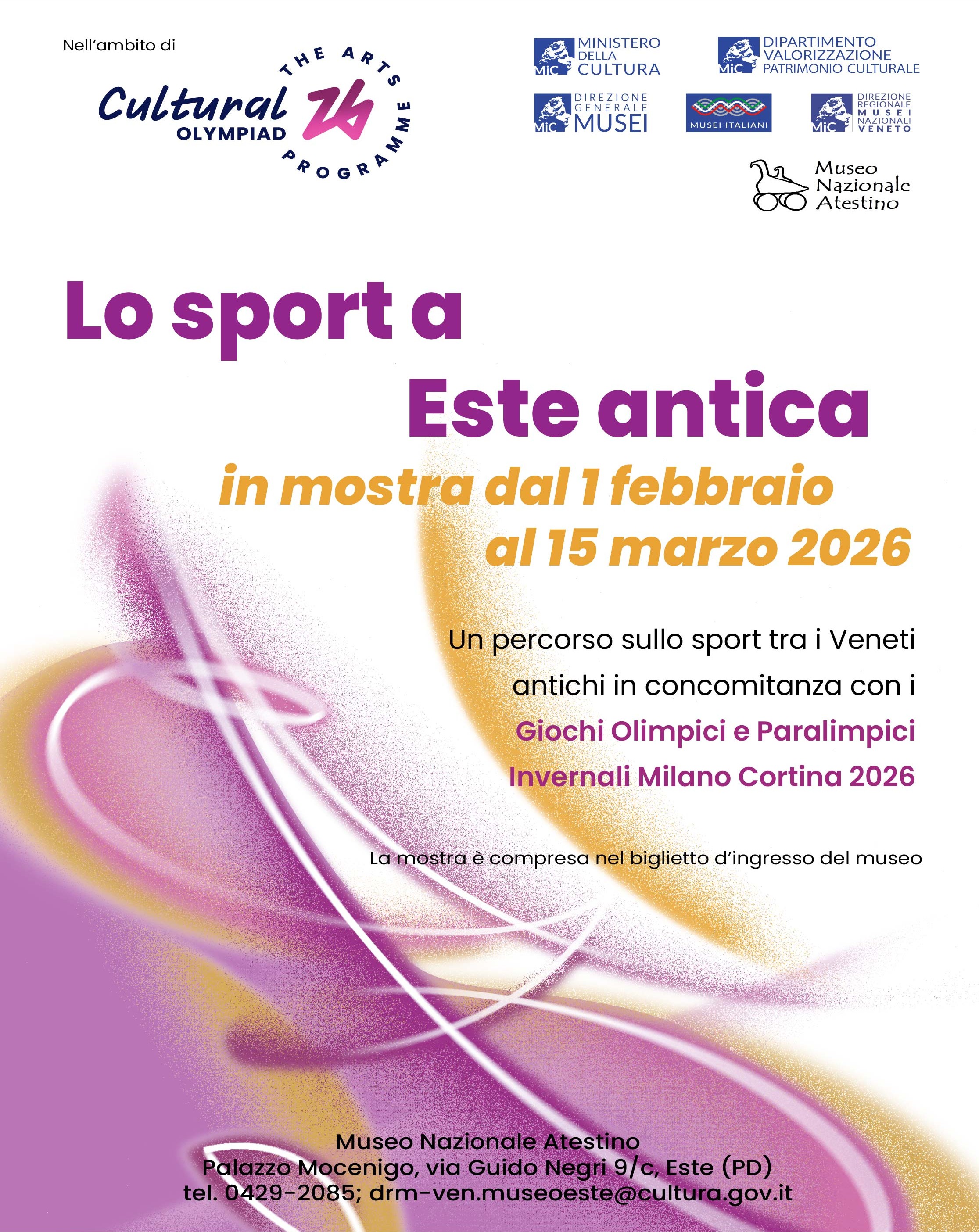 Nell'ambito delle Olimpiadi Culturali della Fondazione Milano Cortina 2026, in occasione dei Giochi Olimpici e Paralimpici Invernali, la Direzione regionale Musei nazionali Veneto propone l'iniziativa “In armonia con l’inverno: natura, sport e salute”: i musei statali del Veneto hanno creato (o inaugureranno tra poco) esposizioni grandi o piccole relative alle tematiche dell'inverno e dello sport.